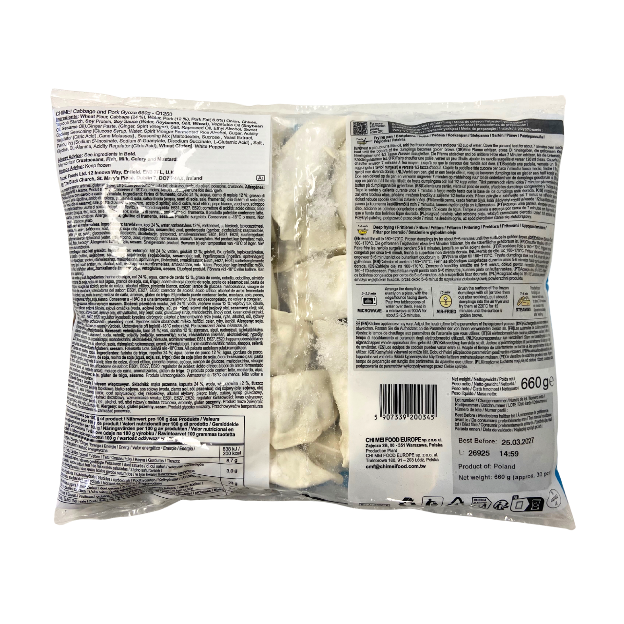 豚肉と新鮮なキャベツを使用したジューシーで旨味豊かな中華餃子で、焼き・茹で・蒸し調理に対応し、家庭用や鍋料理にも便利な冷凍点心です。