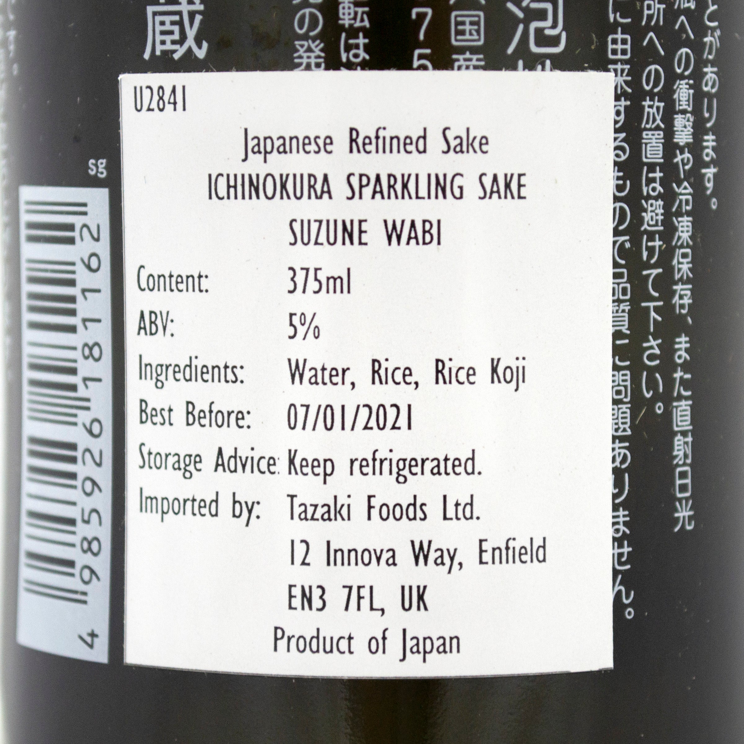 Ichinokura Suzune Wabi Sparkling Sake 375ml 5%