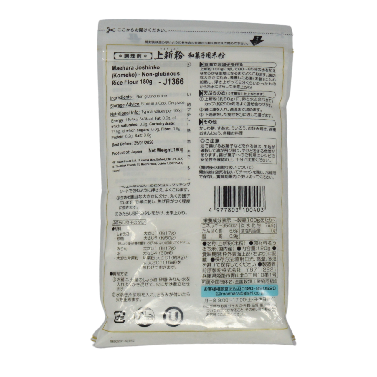 Typical values per 100g: Energy 1464kJ/ 343kcal, Fat: 0.9g, of which saturates: 0.0g, Carbohydrate 77.9g, of which sugars: 0.0g, Fibre: 0.6g, Protein: 6.2g, Salt: 0.0g