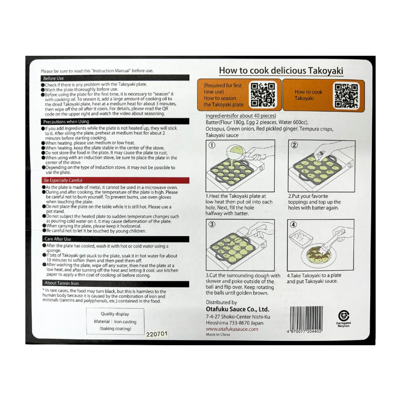 鋳鉄製のたこ焼き器は、ガスコンロとIHコンロの両方に対応しています。外はカリッ、中はふわふわの美味しいたこ焼きが焼けます。