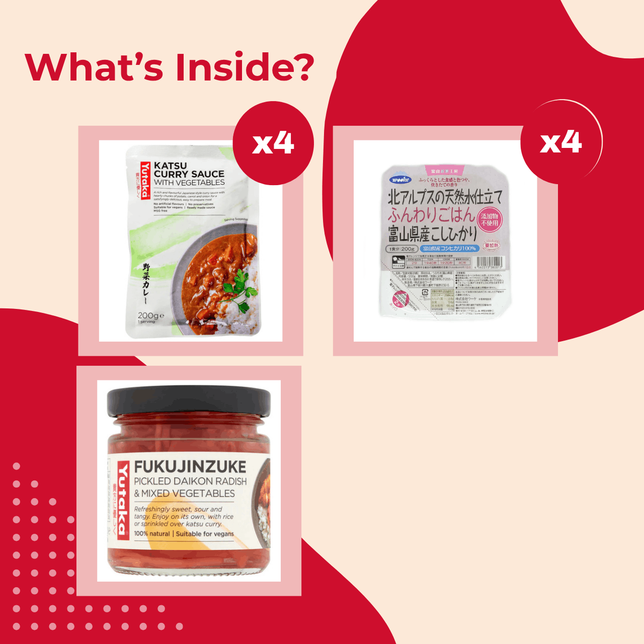 「どうやってカツカレーを作るの?」とお悩みの方は、ぜひ日本式カレーを。旨味溢れるカレールーは日本米にベストマッチです。味の鍵は漬物の「福神漬け」で、食感と酸味が最高のアクセントに。加えて、スーパーで売っているBreaded Chickenを乗せるとさらに食べ応えを楽しめます。