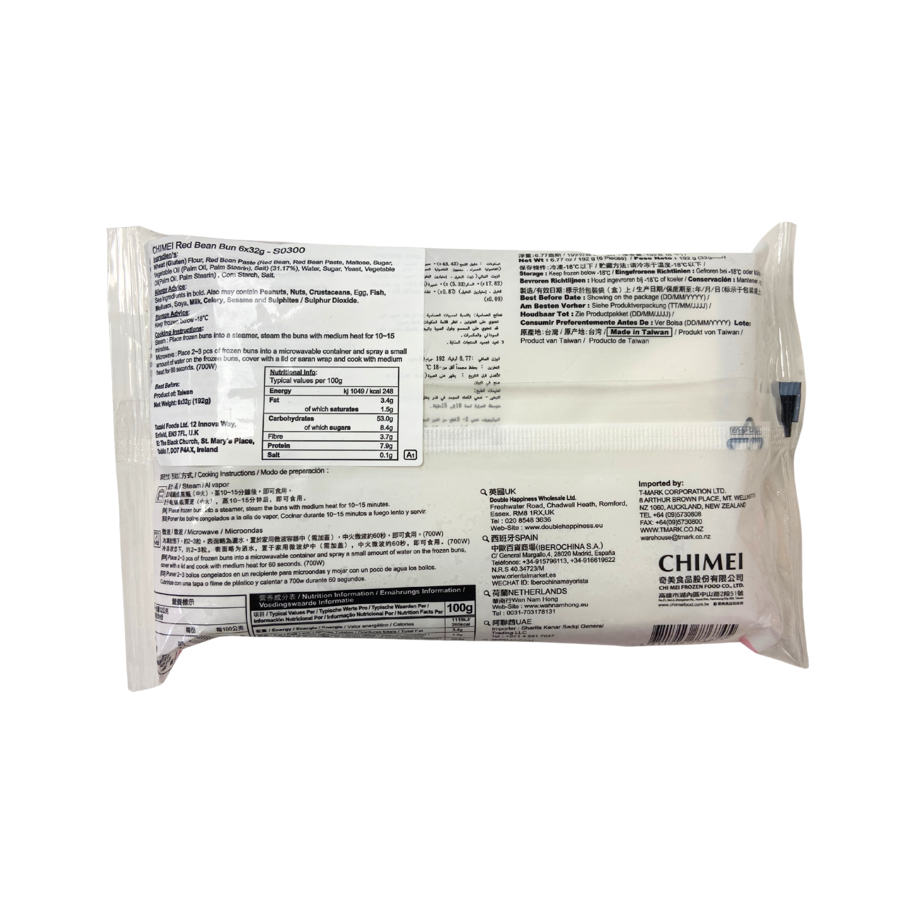 Chimei Red Bean Buns are soft steamed buns filled with smooth and mildly sweet red bean paste, perfect for desserts, tea time and Asian snack assortments, supplied as six mini buns, 6×32g.