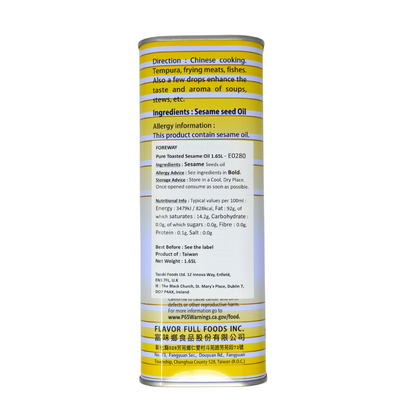 This is the 100% PURE finest roasted sesame oil. Roasting and grinding sesame seeds is an art and science that takes years of training. Only properly roasted and gently pressed sesame can produce a rich flavour and a desirable nutty aroma. It is the perfect ingredient for Asian cuisines as dressings for cold dishes, marinades & sauces, and the final essence of cooking.