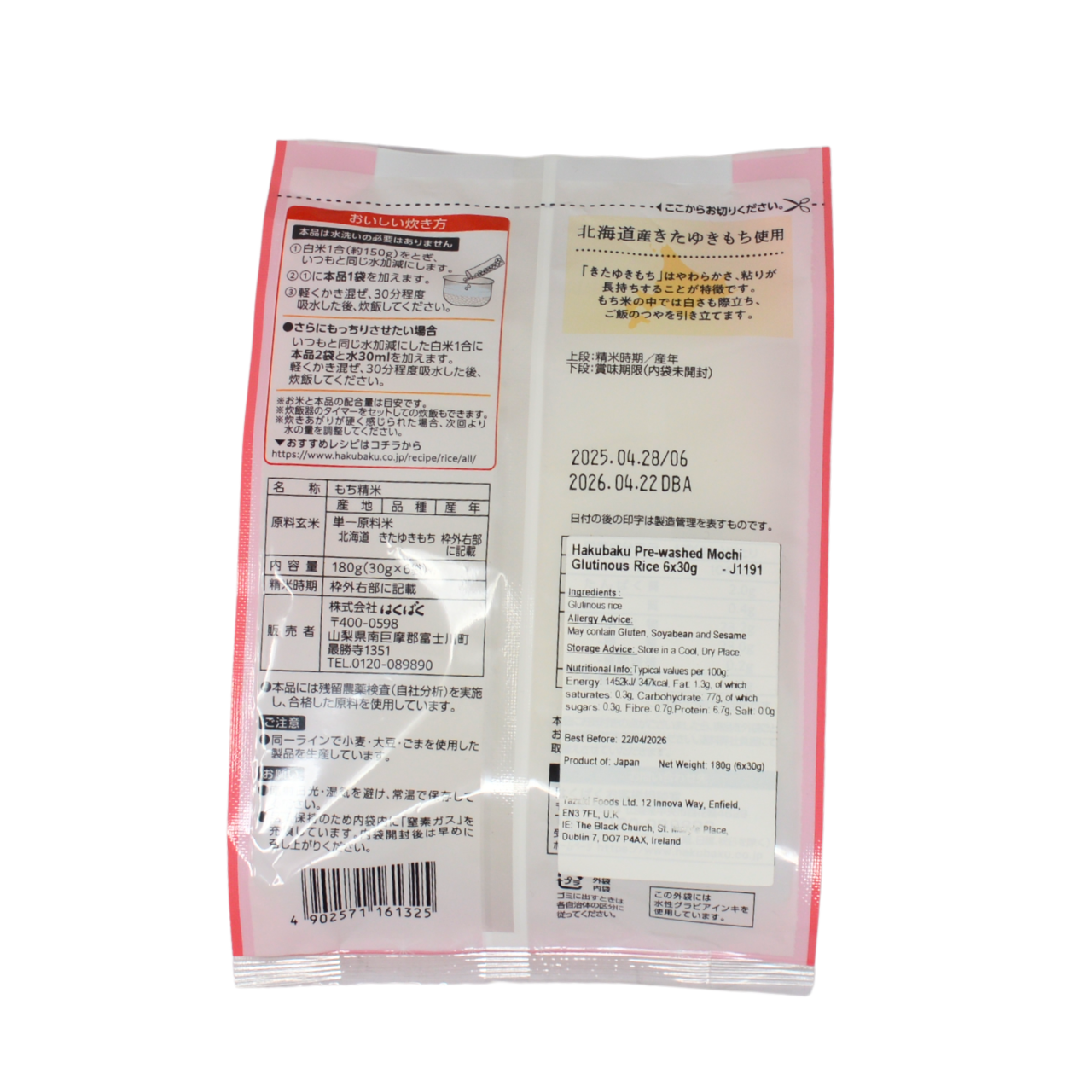 Perfect for those who don’t need a full bag of glutinous rice or want to add extra chewiness to their everyday rice. This pre-washed, portioned glutinous rice can simply be added to your usual rice for a deliciously chewy bowl of rice every time.