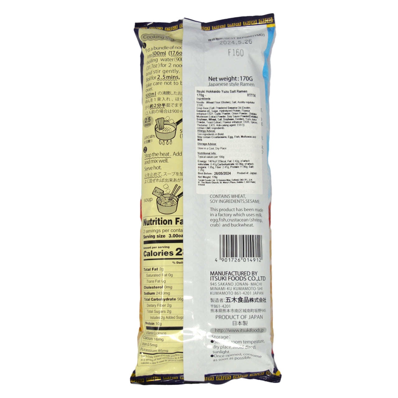 Noodle: Wheat Flour (Gluten), Salt, Acidity regulator : E500. Soup Base (Salt, Powdered Sesame Oil (Dextrin, Sesame oil), Sugar, Hydrolyzed Protein, Flavour enhancer:E621, Garlic Powder, Onion Powder, Shiitake Mushroom Extract Powder, Soy Sauce Powder(Defatted Soybean, Wheat, Salt, Soybean, Dextrin), Yuzu Juice Powder, Yeast Extract, Flavour enhancer: E635, Spices, Thickener: E415, Anti-caking agent: E551)). Contain GMO materials