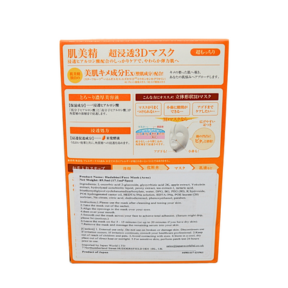 A 3D sheet mask series designed to fit every contour of the face, delivering deep hydration with rich, thick beauty essence. This ultra-moisturizing care leads to soft, resilient skin with a bouncy texture with Hadabisei’s unique “Skin Refining Complex Ex.” Enriched with the permeation-enhancing ingredient “rice ferment filtrate,” it boosts absorption into the stratum corneum while providing lasting moisture.