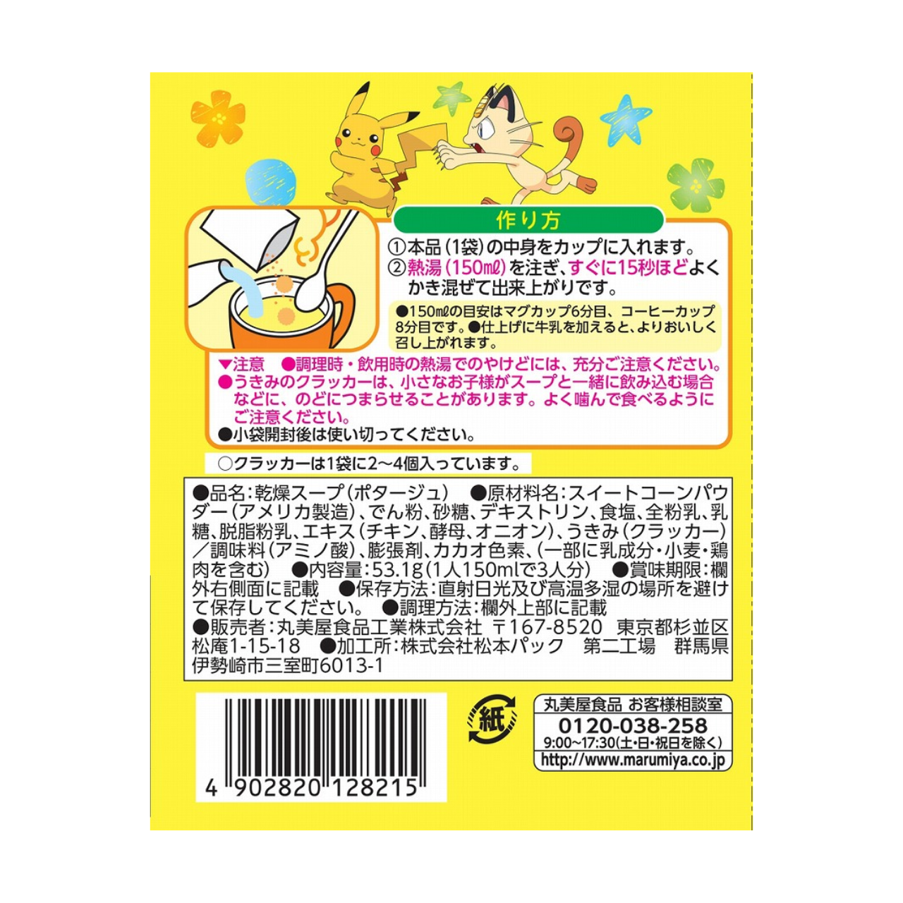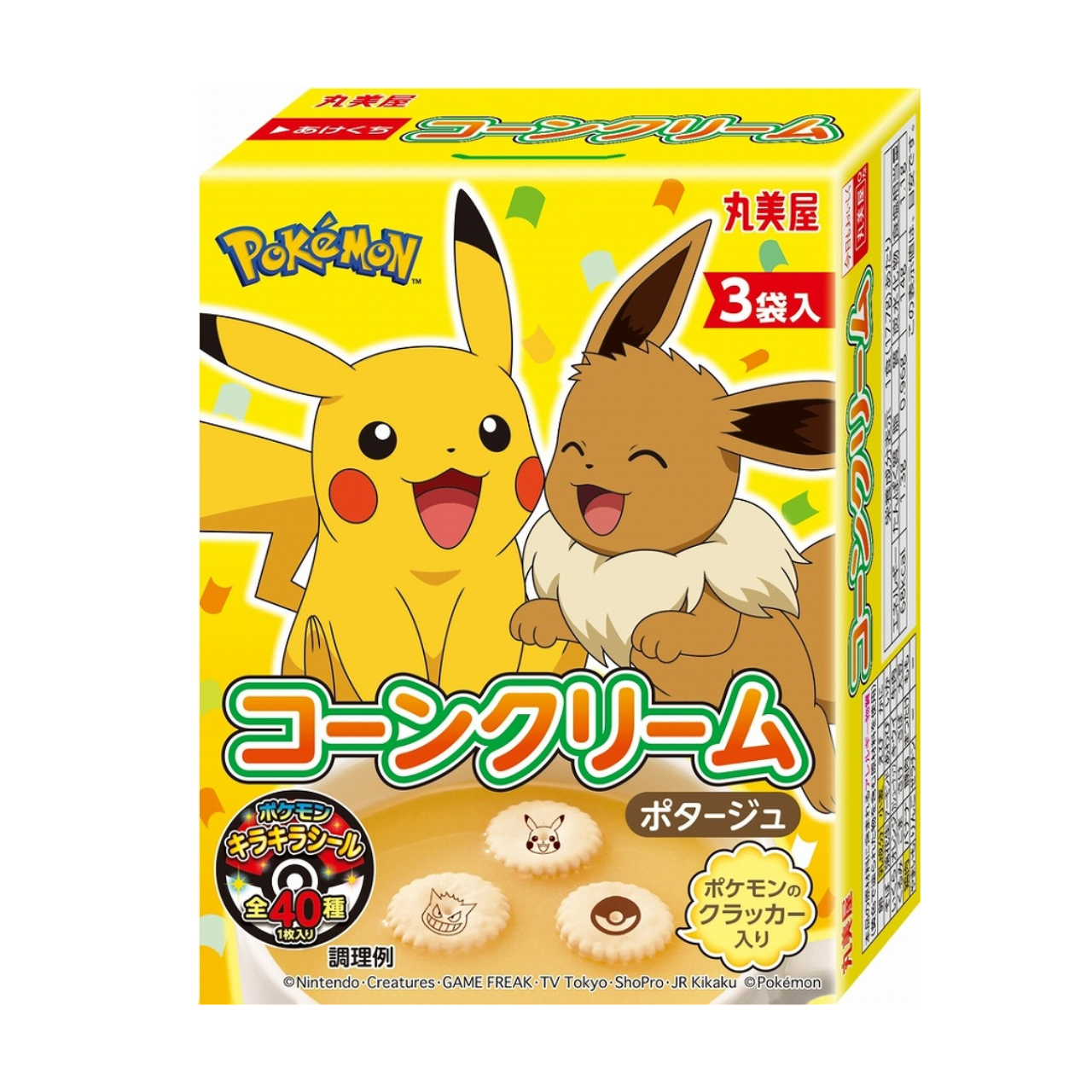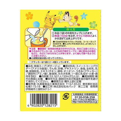 Corn soup (corn potage) is a gently flavoured soup that is loved in Japanese homes, Western-style restaurants, and even school lunches. The main ingredient is sweet corn, which is simmered with milk, butter, and fresh cream to bring out its natural sweetness and create a smooth texture. Marumiya’s Corn Soup features a slightly thick, creamy consistency and a subtly sweet flavour – simply add hot water for a perfect breakfast. It’s a heartwarming dish enjoyed by people of all ages, from children to adults. The cute Pokémon-themed packaging comes with a sparkly sticker, making it extra fun for kids!