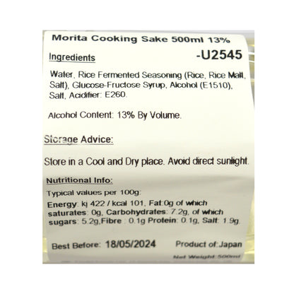Water, Rice Fermented Seasoning (Rice, Rice Malt, Salt), Glucose-Fructose Syrup, Alcohol (E1510), Salt, Acidifier: E260. Alcohol Content: 13% By Volume.