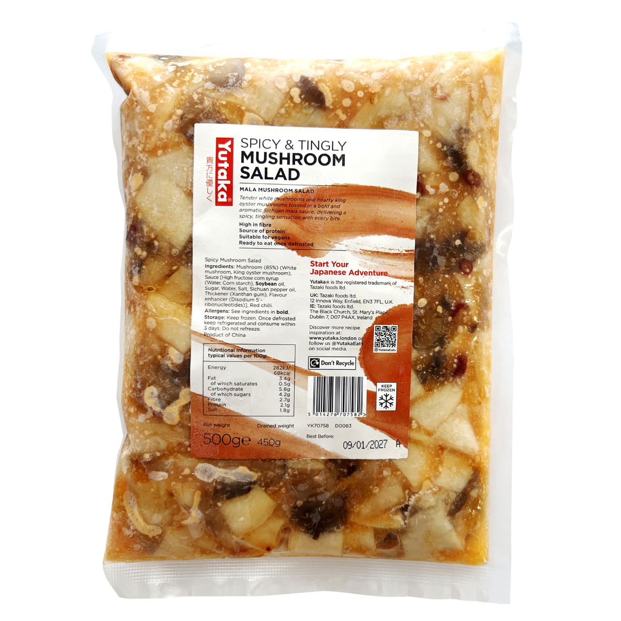 White Mushroom (45%), King Oyster Mushroom(40.06%), Marinade (High Fructose Corn Syrup (Water, Corn), Soybean Oil, Sugar, Water, Salt, Sichuan Pepper Oil, Xanthan Gum, Flavor Enhancer E635), Red Chilli.